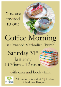 Coffee Morning Event Date: January 31, 2026 Time: 10.30 Location: Cyncoed Methodist Church Fellowship room Address: Cyncoed Methodist Church Fellowship room